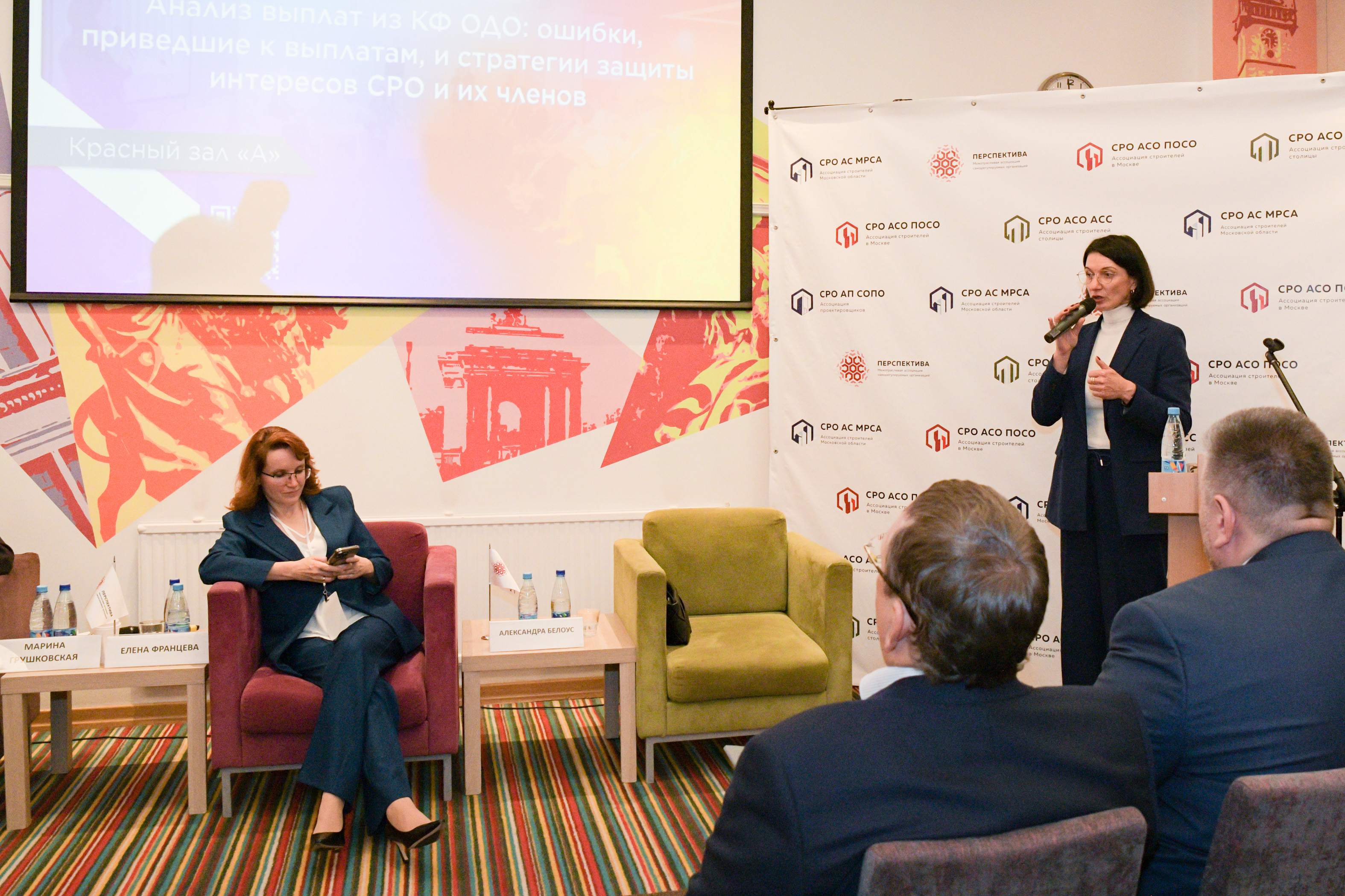 Александра Белоус в своём выступлении также подчеркнула, что расширение ответственности делает систему саморегулирования уязвимой: заказчики, допуская нарушения законодательства при заключении или исполнении договоров, продолжают сохранять право на возмещение убытков из КФ ОДО.